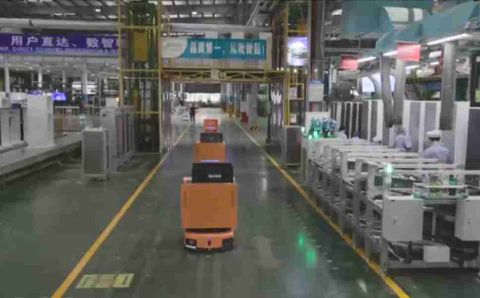 为车载冰箱物流配送打造的智能解决方案,,,,包含产中物流通过潜伏举升AMR搬运至线边,,,产后成品物流智能仓储,,流程包含产中物流智能齐套入库,,线边安灯叫料AMR智能配送至线边,,,,成品入库、、、出库,,,,通过无人堆高车机器人,,,,智能仓储管理替代人工作业管理,,,实现更高存储、、、更高效率、、更具柔性化的解决方案。。。。